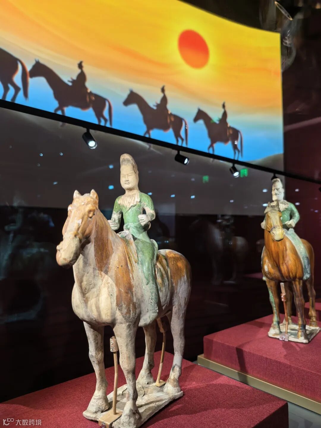 其中,漢代陶彩繪馬頭、唐代三彩馬、三彩胡人騎馬狩獵俑、銅“圣旨”合符、銀虎鈕“鑲黃旗護(hù)軍統(tǒng)領(lǐng)印”等珍貴文物,以及《乾隆帝盔甲乘馬圖》《郎世寧萬吉骦軸》等數(shù)字展品紛紛亮相,結(jié)合數(shù)字演繹,生動(dòng)展現(xiàn)馬在歷史中的多元意義。