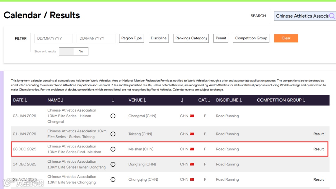 成績(jī)已上傳世界田聯(lián)并在賽歷上顯示