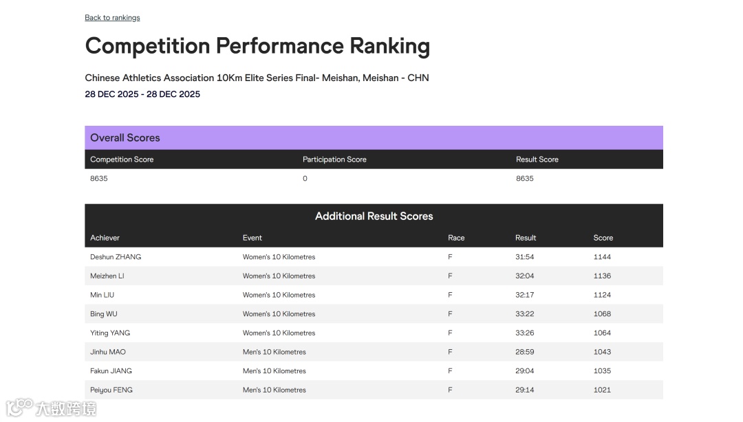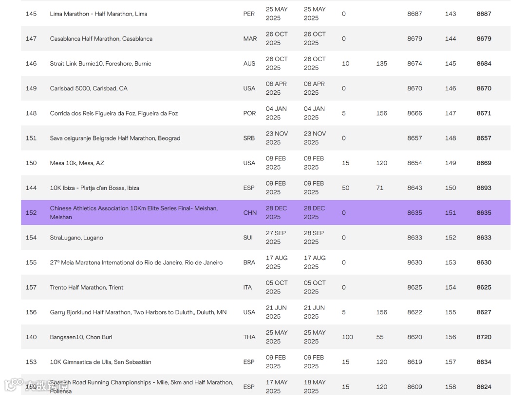 2025中國(guó)10K總決賽眉山站成績(jī)上傳世界田聯(lián),2025賽季亞洲女子10公里路跑前二均出自四川眉山!