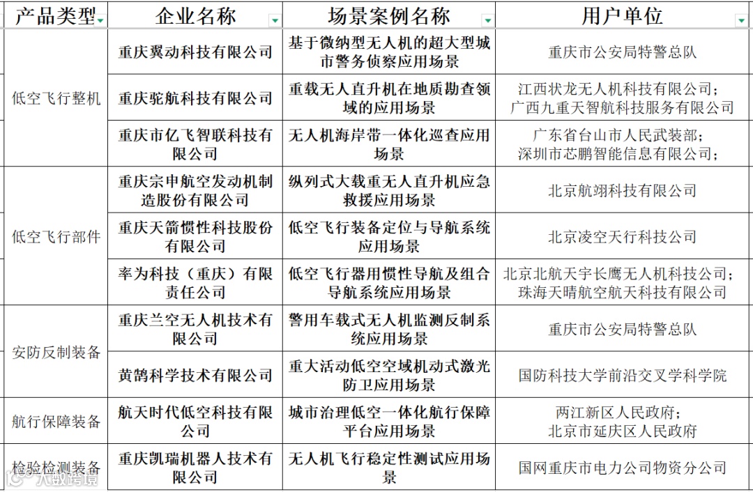 1月26日,重慶市經(jīng)信委發(fā)布2025年度重慶市“低空裝備+”典型應(yīng)用場景案例名單重慶市低空產(chǎn)業(yè)鏈產(chǎn)品名錄(2025年版)進行公示 。