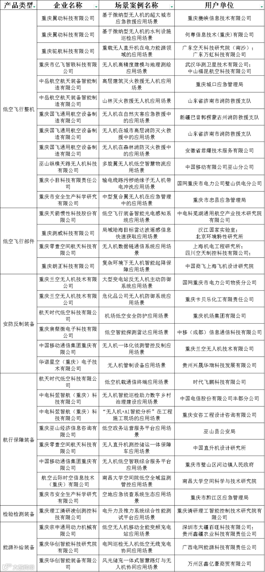 《重慶市低空產(chǎn)業(yè)鏈產(chǎn)品名錄(2025版)》匯總表.xls