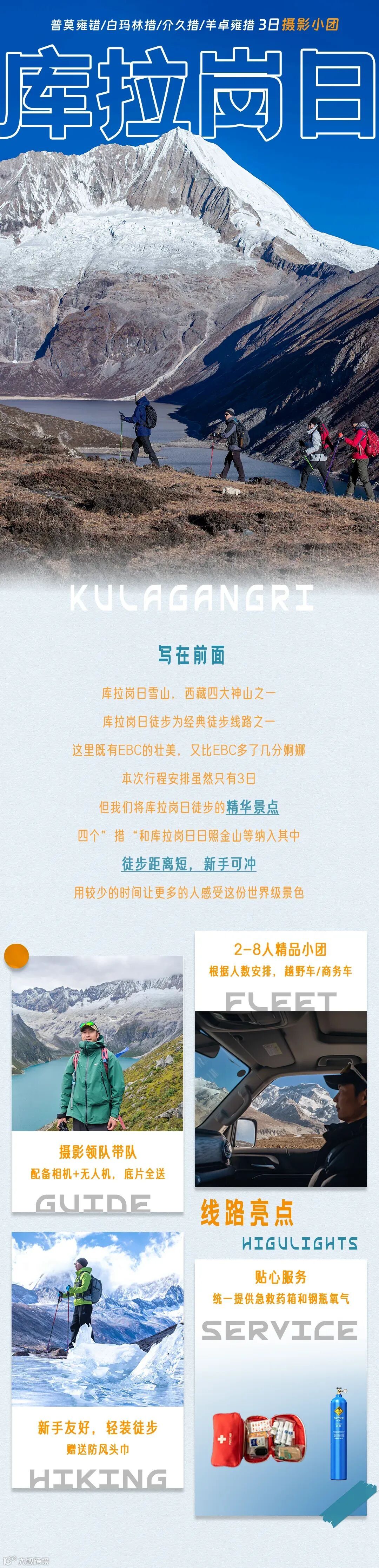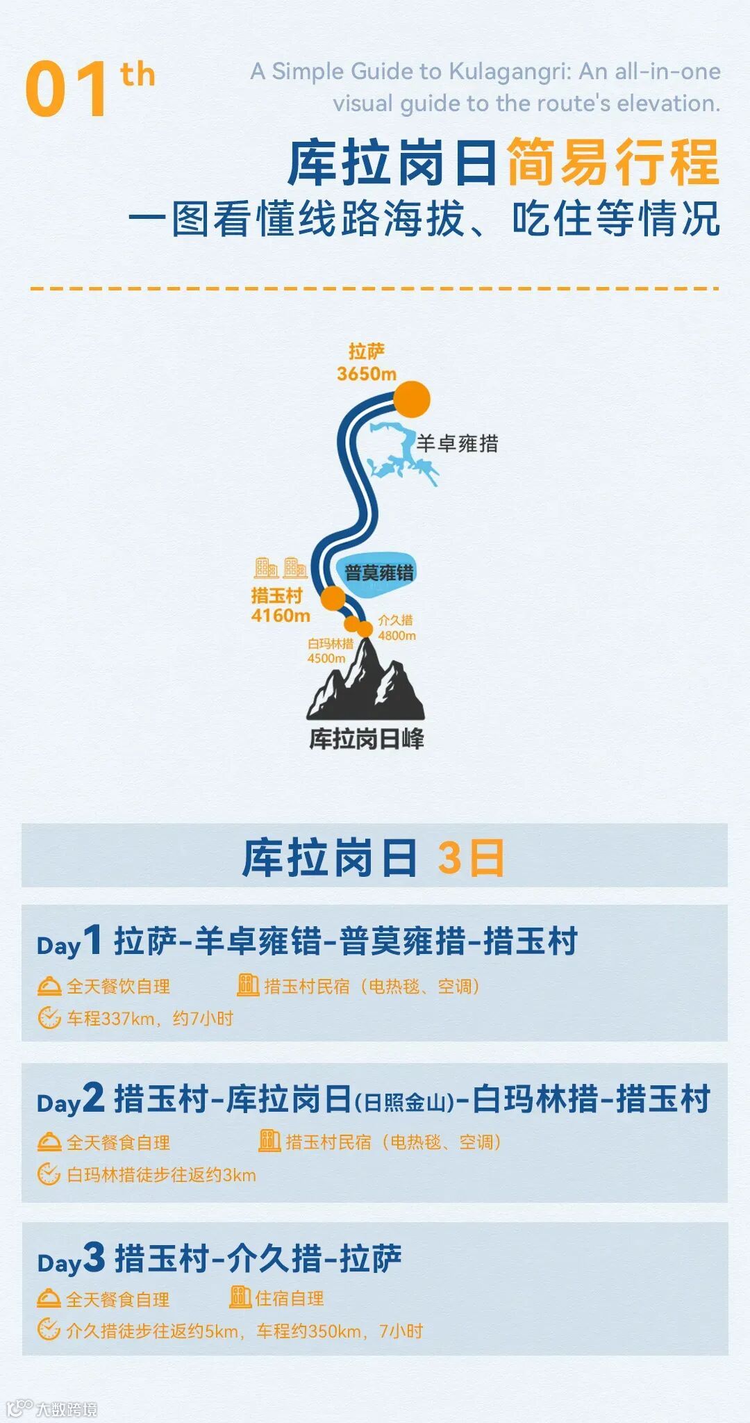 (1)全程徒步約10公里,徒步平均海拔為4700米左右,坐車最高海拔為蒙達拉山口5363米,住宿最高海拔為措玉村4160米。