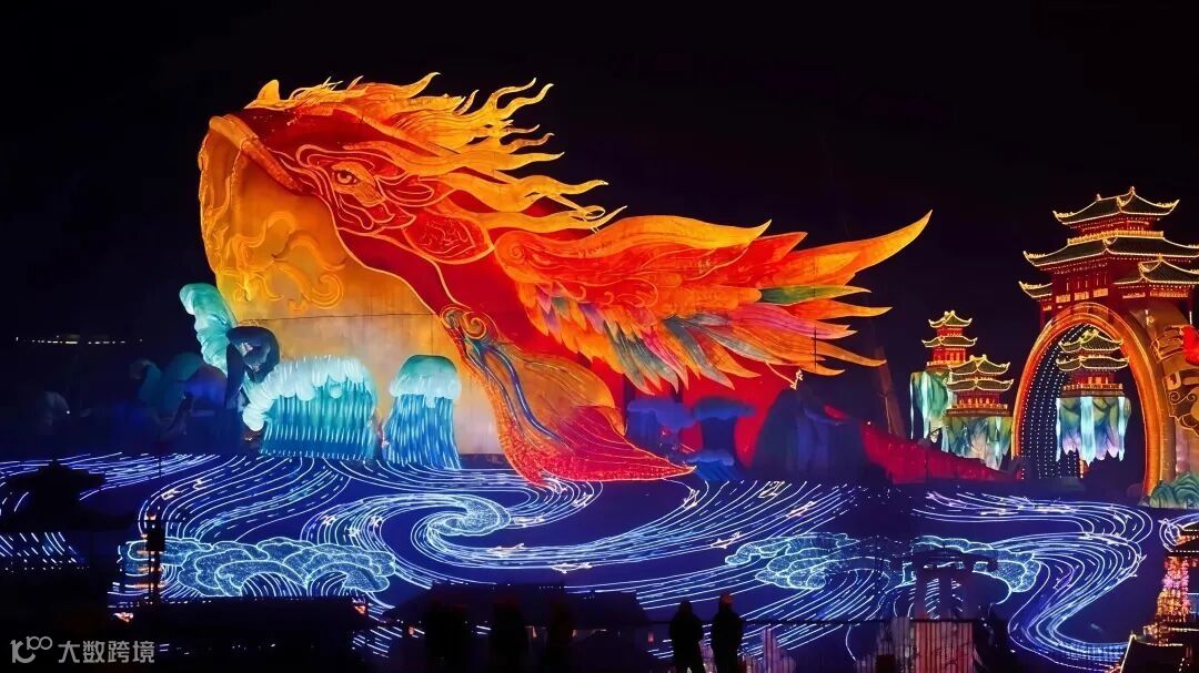 210米長的“神奇華夏”燈組,靈感來自《莊子》鯤鵬。匠人用傳統(tǒng)扎制技藝勾勒羽翼,燈光流轉(zhuǎn)間,仿佛巨鵬展翅——既有東方意境,又是非遺工藝的現(xiàn)代表達(dá)。