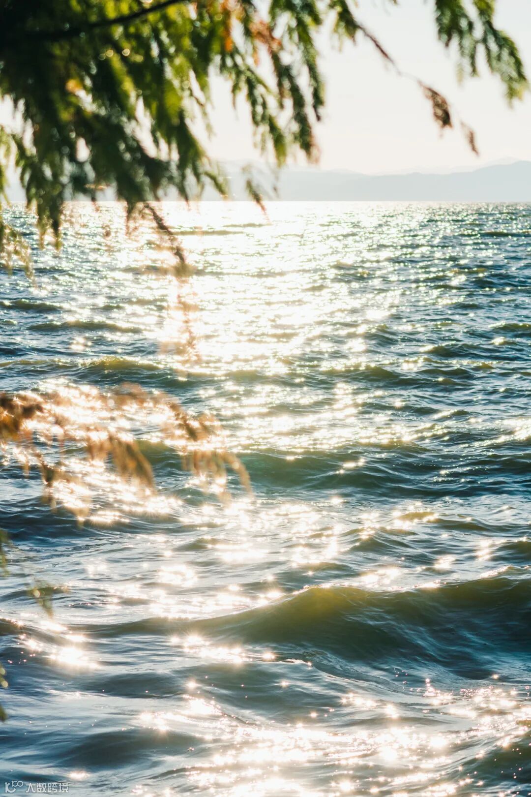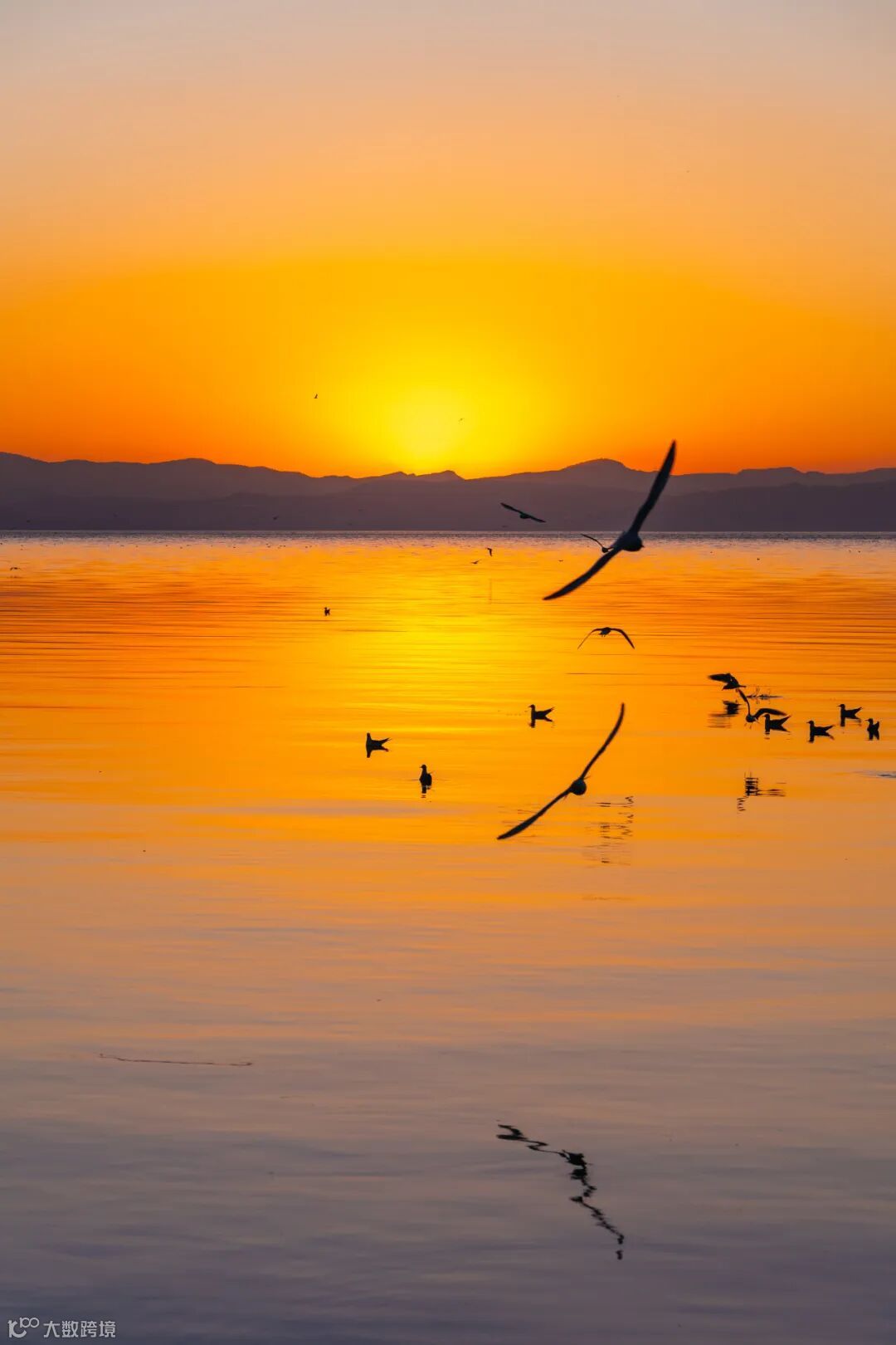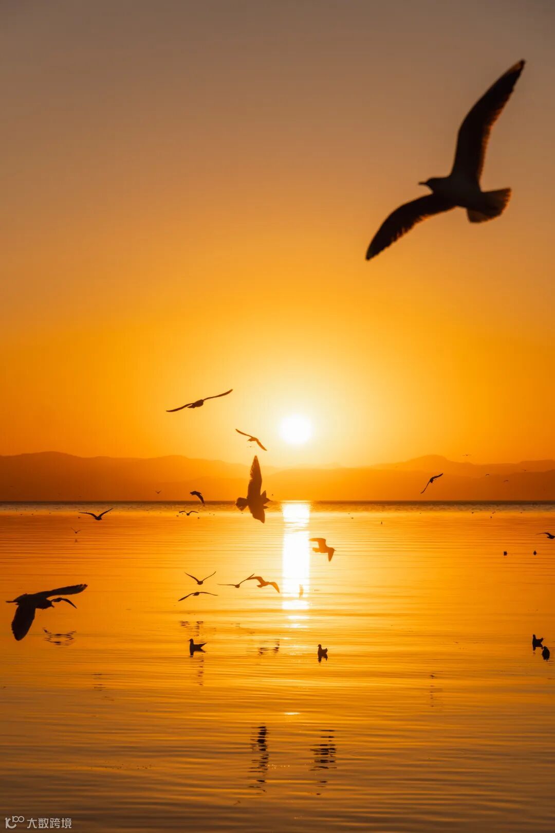 俯瞰湖海的日落視角