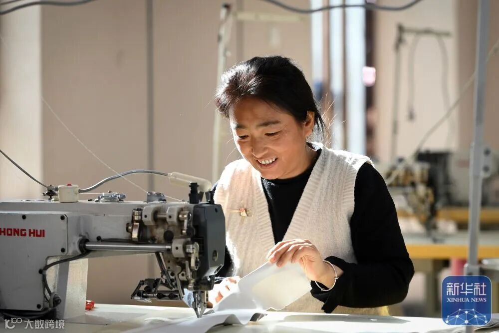 臨縣石白頭鄉(xiāng)段賢村村民米林麗在安置點(diǎn)的箱包扶貧車間里忙碌(11月27日攝)。搬遷后,米林麗在安置點(diǎn)找到了一份保潔員的工作,還在安置點(diǎn)的箱包扶貧車間兼職縫紉工人。新華社發(fā)(劉亮亮 攝)
