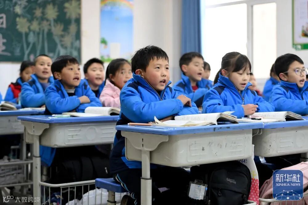 在臨縣湫水柏林苑易地扶貧搬遷安置點(diǎn)的臨縣高級(jí)中學(xué)附屬柏林苑學(xué)校,學(xué)生們?cè)诮淌依锷险n(11月26日攝)。新華社記者 詹彥 攝
