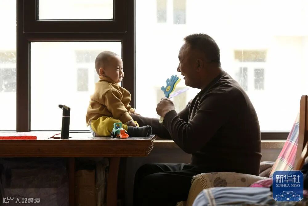 在臨縣湫水柏林苑易地扶貧搬遷安置點(diǎn),臨縣大禹鄉(xiāng)石窯村的秦照平在家中陪外孫玩耍(11月26日攝)。2019年,秦照平一家告別了村里的舊房子,搬到了湫水柏林苑易地扶貧搬遷安置點(diǎn)的新居。新華社記者 詹彥 攝