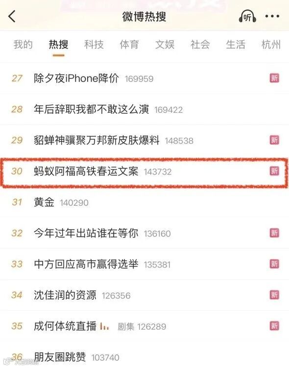 這些暖心文案的亮相,引發(fā)了不少年輕人拍照上傳到社交媒體。#螞蟻阿福高鐵春運(yùn)文案#這一話題很快就沖上了微博熱搜。有網(wǎng)友說,人還沒到家,先被阿福的文案暖哭了。