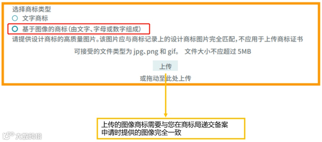 *注意??!如果您的商標(biāo)是基于圖像的商標(biāo),您還需要上傳一張商標(biāo)的圖像: