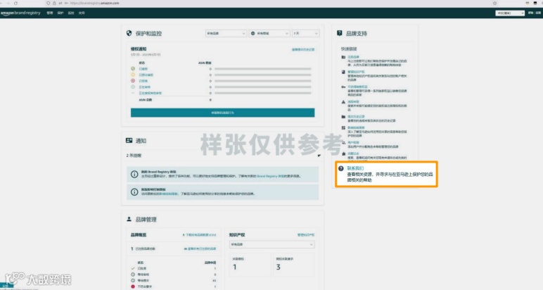 如果賣家已經(jīng)在亞馬遜品牌注冊(cè)中至少成功注冊(cè)了一個(gè)品牌,可以登陸品牌注冊(cè)后臺(tái),在首頁找到“聯(lián)系我們”,聯(lián)系到品牌支持團(tuán)隊(duì)。