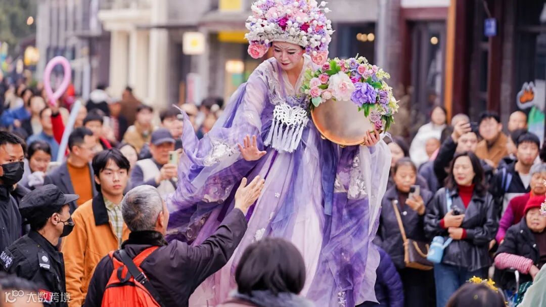 超180場(chǎng)山海經(jīng)主題戲劇在老街街巷中輪番上演。從日暮到夜深,神祇異獸穿梭于古建筑群間,以高蹺、環(huán)境戲劇等多元形式,構(gòu)建起一座沒(méi)有邊界的“移動(dòng)劇場(chǎng)”,讓游客在一步一景中邂逅東方奇幻。