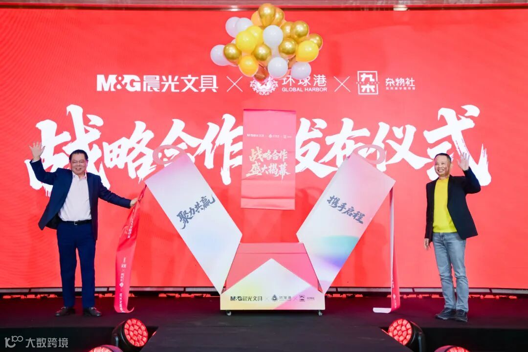 全國(guó)政協(xié)委員、全國(guó)工商聯(lián)常委、月星集團(tuán)董事局主席丁佐宏(左)與晨光文具總裁陳湖雄(右)共同開啟“星光禮盒”,標(biāo)志著晨光文具與上海環(huán)球港戰(zhàn)略合作正式啟動(dòng)。