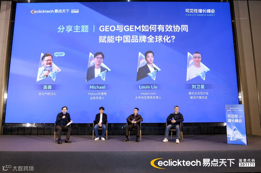 在非凡產(chǎn)研CEO吳畏主持的圓桌論壇“GEO與GEM如何有效協(xié)同賦能中國(guó)品牌全球化?”中,Moloco代理商業(yè)務(wù)負(fù)責(zé)人Michael、impact.com大中華區(qū)商務(wù)負(fù)責(zé)人Louis Liu、騰訊云泛互行業(yè)解決方案總監(jiān)劉衛(wèi)星,從技術(shù)、平臺(tái)與生態(tài)多維度探討GEO(全球搜索引擎優(yōu)化)與GEM(全球效果營(yíng)銷(xiāo))整合路徑。嘉賓一致認(rèn)為,二者深度協(xié)同可為品牌帶來(lái)更長(zhǎng)期、更穩(wěn)定的流量與轉(zhuǎn)化價(jià)值,助力構(gòu)筑全球化可見(jiàn)性護(hù)城河。