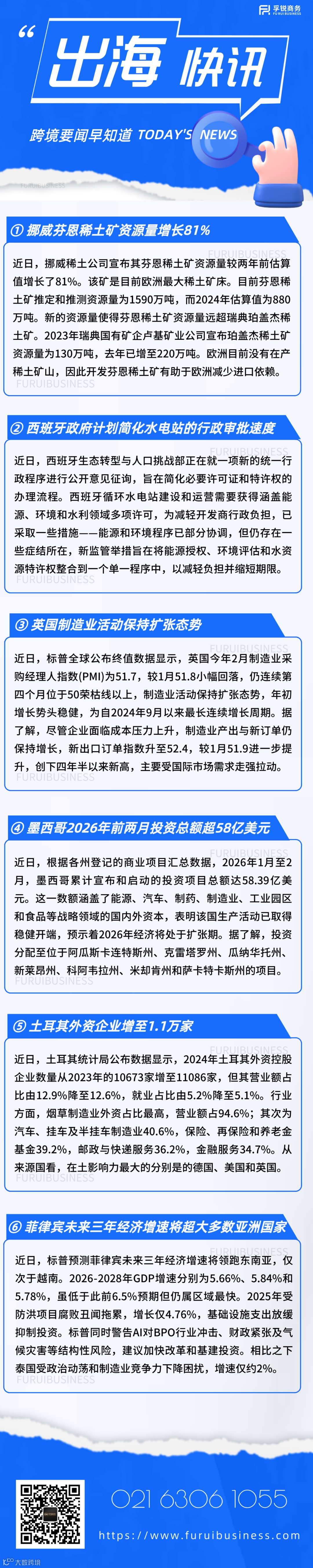 挪威芬恩稀土礦資源量增長81%、西班牙政府計(jì)劃簡化水電站的行政審批速度|企業(yè)出??煊崱?11期】 孚銳商務(wù)