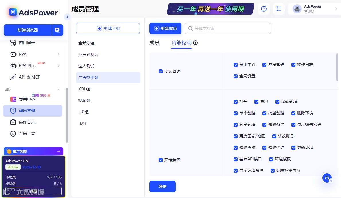 同時(shí) AdsPower 還支持團(tuán)隊(duì)多人協(xié)作功能,哪怕團(tuán)隊(duì)成員不在同一地點(diǎn),也能通過 AdsPower 一起運(yùn)營,分配不同賬號(hào)的操作權(quán)限,協(xié)同完成店鋪運(yùn)營工作,全程數(shù)據(jù)互通、權(quán)限可控,無論你是個(gè)人小賣家,還是團(tuán)隊(duì)一起運(yùn)營的,都能適配。