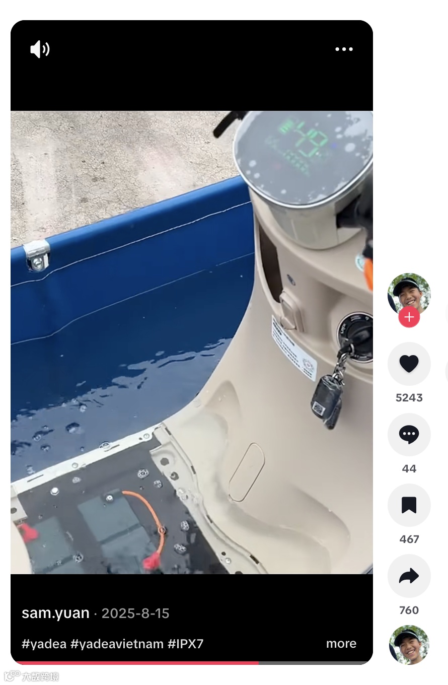 與 Yadea 合作的 X7 防水能力實(shí)測視頻,通過極端環(huán)境演示 IPX7 防護(hù)性能,以“看得見”的方式強(qiáng)化產(chǎn)品耐用性認(rèn)知,顯著提升可信度 [10] 。
