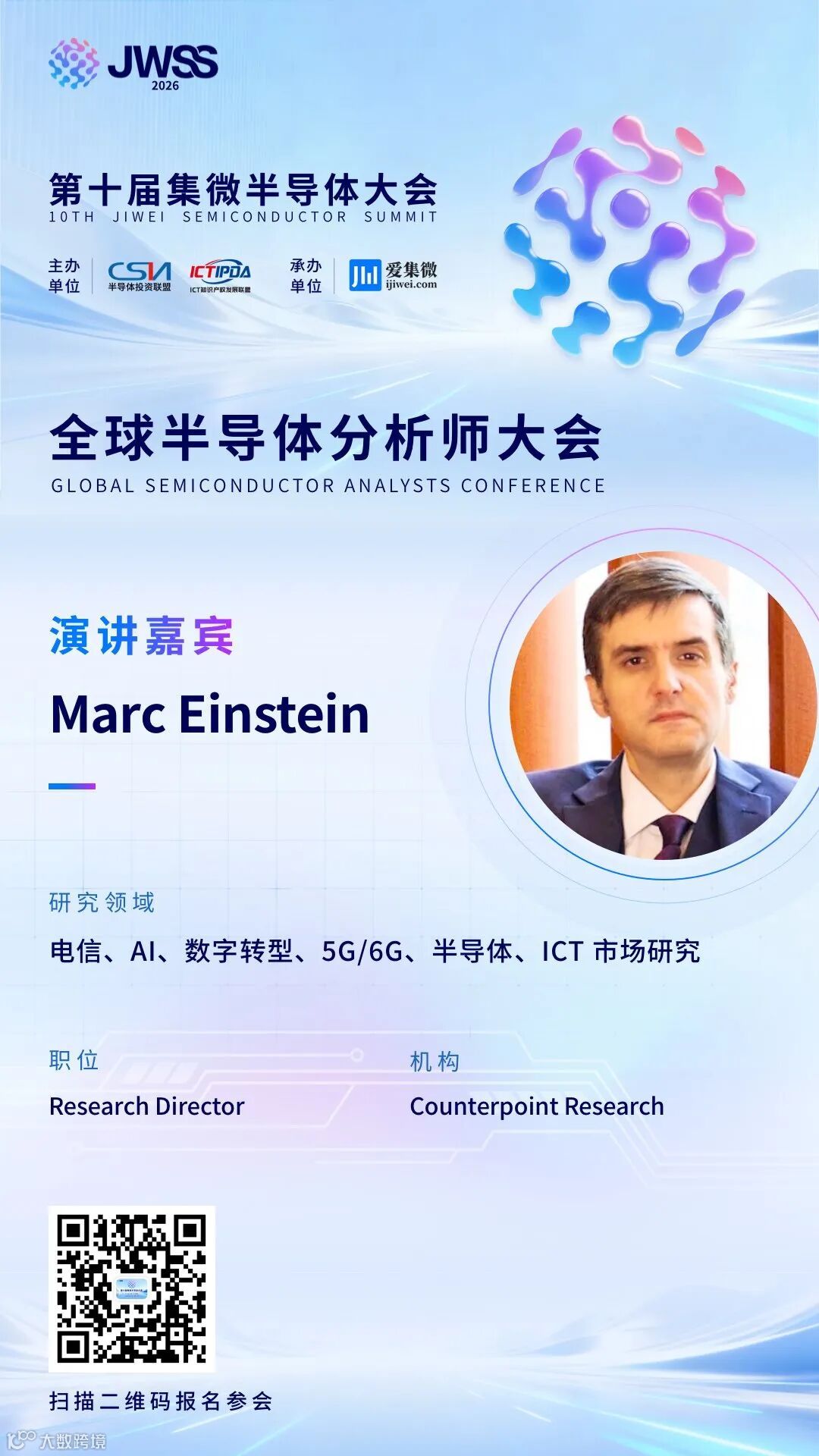 我們非常榮幸地邀請到 Counterpoint Research研究總監(jiān)Marc Einstein重磅出席本次大會。他將憑借其團隊的一手數(shù)據(jù)與深刻的產(chǎn)業(yè)洞察,為現(xiàn)場觀眾帶來一場干貨滿滿的深度解析。