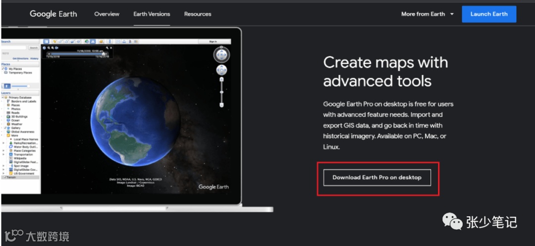 步驟2:點(diǎn)擊“在桌面上下載 Earth Pro”;