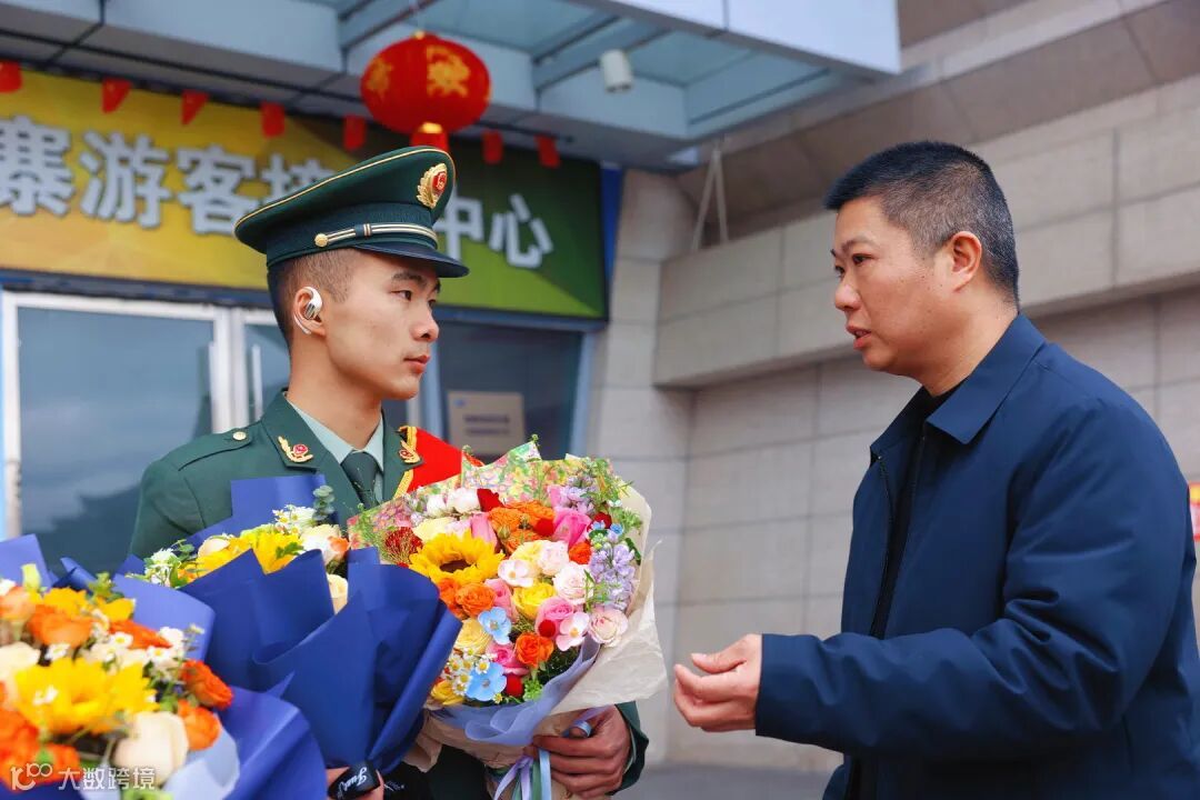 迎接現(xiàn)場(chǎng),縣軍地工作人員早早等候,為返鄉(xiāng)退役軍人送上鮮花,與大家親切握手、交談,歡迎他們載譽(yù)歸來(lái)?,F(xiàn)場(chǎng)氛圍熱烈莊重,“光榮返鄉(xiāng)、再立新功”的標(biāo)語(yǔ)格外醒目,充分彰顯全社會(huì)擁軍崇軍的濃厚氛圍。