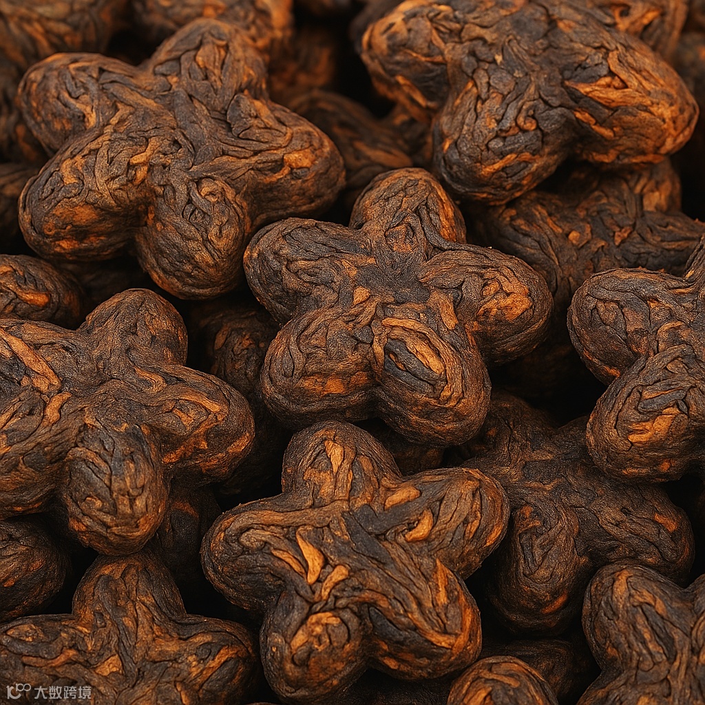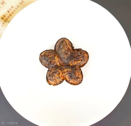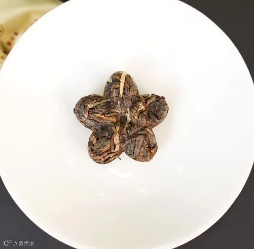熟茶的深褐色在梅花造型下更顯古樸雅致
