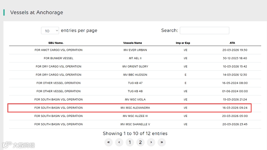 MSC Alexandra號建于2010年,船長365.8米,寬51.3米,最大載箱量14036TEU,懸掛巴拿馬籍。該輪作為臨時加班船執(zhí)泊中東至印度航線,此前經(jīng)停阿聯(lián)酋豪爾費坎港。