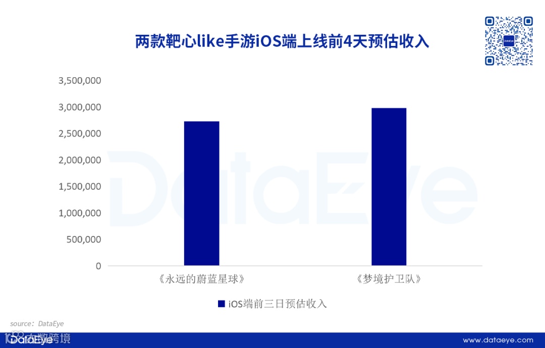 對比詩悅網(wǎng)絡此前同類型產(chǎn)品可見,《永遠的蔚藍星球》iOS端上線前4天預估累計收入272萬元,整體預估收入略低于《夢境護衛(wèi)隊》。不過《永遠的蔚藍星球》上線第3天單日預估收入超過了《夢境護衛(wèi)隊》。
