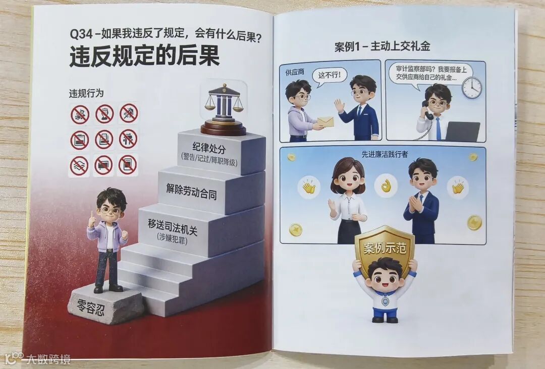 廉潔指南涵蓋了職場全場景的紀(jì)律紅線與合規(guī)準(zhǔn)則,并以通俗易懂的語言、清晰直觀的框架,打造易懂、易學(xué)、易用的廉潔“口袋書”,讓大家一看就懂、時刻警醒: