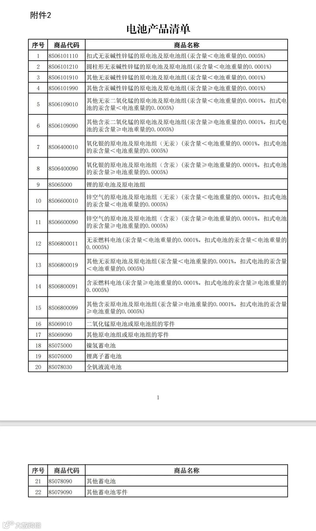 (二)被取消增值稅出口退稅的電池類產(chǎn)品清單: