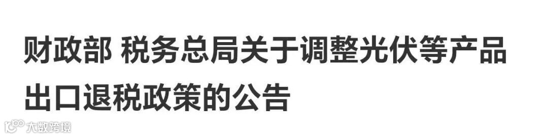 現(xiàn)就調(diào)整光伏等產(chǎn)品出口退稅政策有關(guān)事項公告如下: