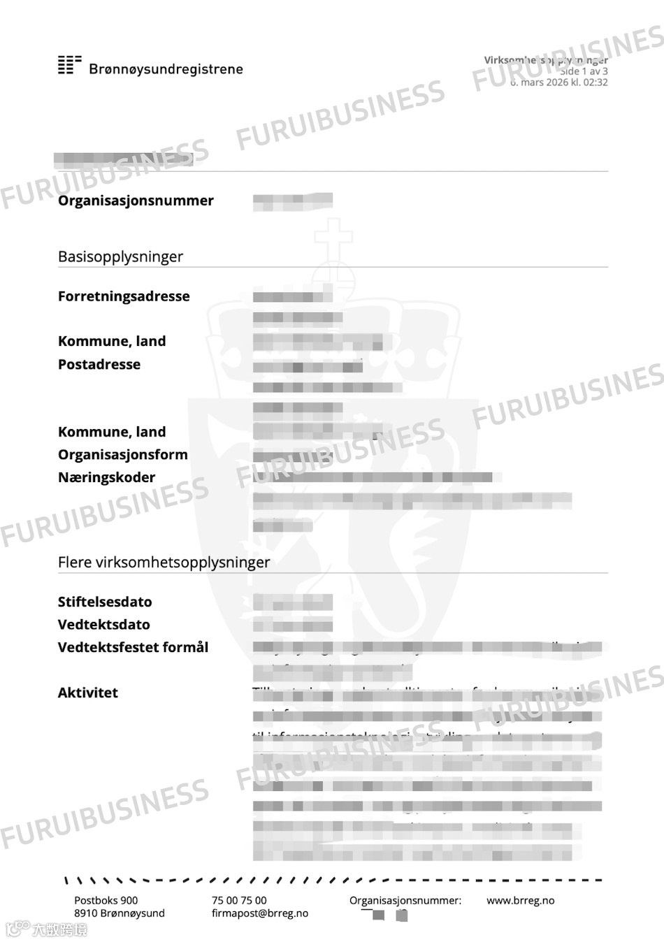 在挪威注冊(cè)公司,還需提供一個(gè)有效的本地注冊(cè)地址。通過孚銳商務(wù)的協(xié)助,這一問題也順利解決。從資料準(zhǔn)備到最終注冊(cè)完成,整體周期約為2–3個(gè)月。