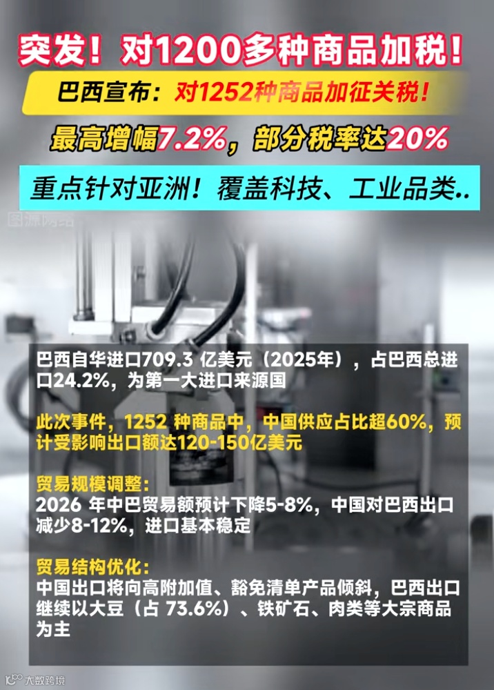 2025年至2026年初,巴西頻繁對中國產(chǎn)品發(fā)起反傾銷調(diào)查或終裁,涉及行業(yè)廣、稅率高、周期長,對中國外貿(mào)企業(yè)形成實質(zhì)性沖擊。