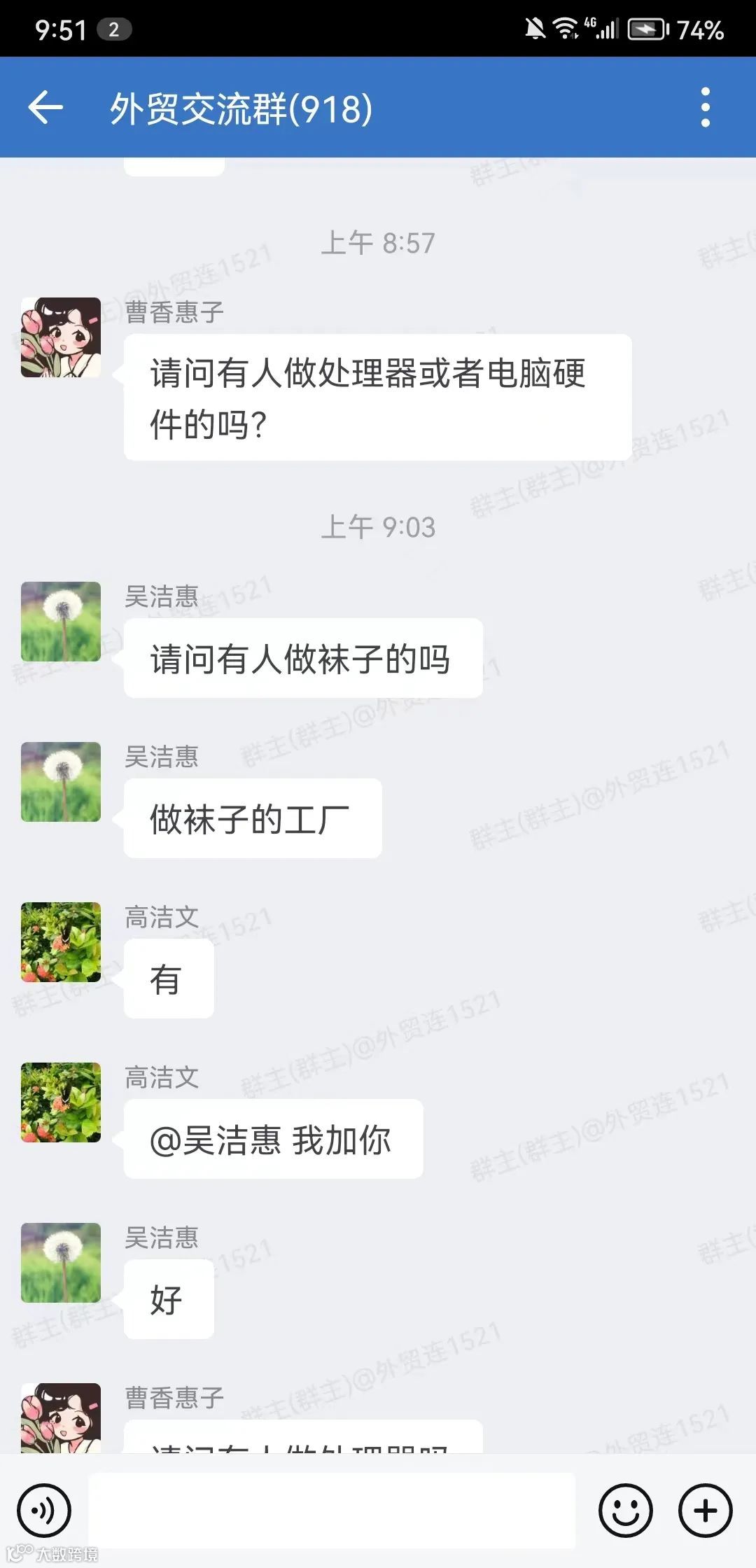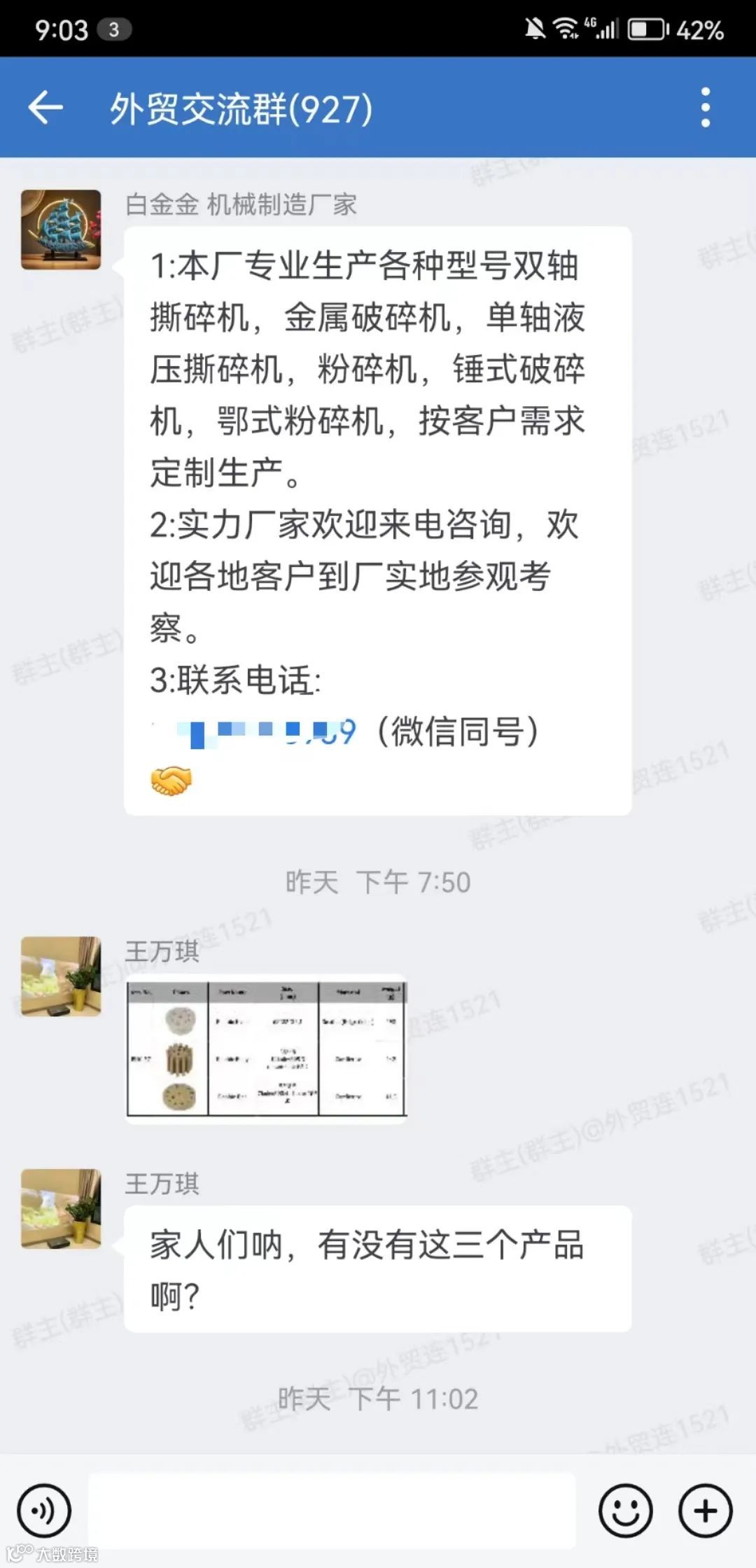 采購交流群!群里外貿(mào)工廠和外貿(mào)公司發(fā)布采購信息、產(chǎn)品信息,溝通便捷,助力成單?。?026.3.26) 外貿(mào)鏈