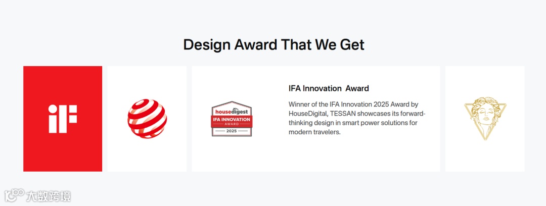 目前TESSAN累計獲得近300項專利,通過SGS、BSMI等全球多項權(quán)威認(rèn)證,并多次斬獲德國iF設(shè)計獎、紅點獎,用設(shè)計與技術(shù)雙重背書,把“一個小插頭”的價值,做成了一門被全球認(rèn)可的生意。