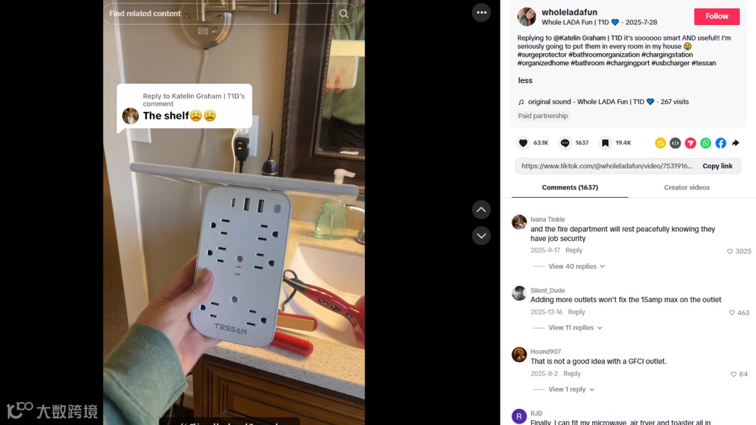 這類視頻不是硬核測評,而是以“生活吐槽+真實使用改善”為主線展開,通過評論互動增強(qiáng)真實感,在輕松敘事中完成種草,與TESSAN“解決日常用電痛點”的定位高度契合,也更容易讓用戶在共鳴中接受產(chǎn)品。
