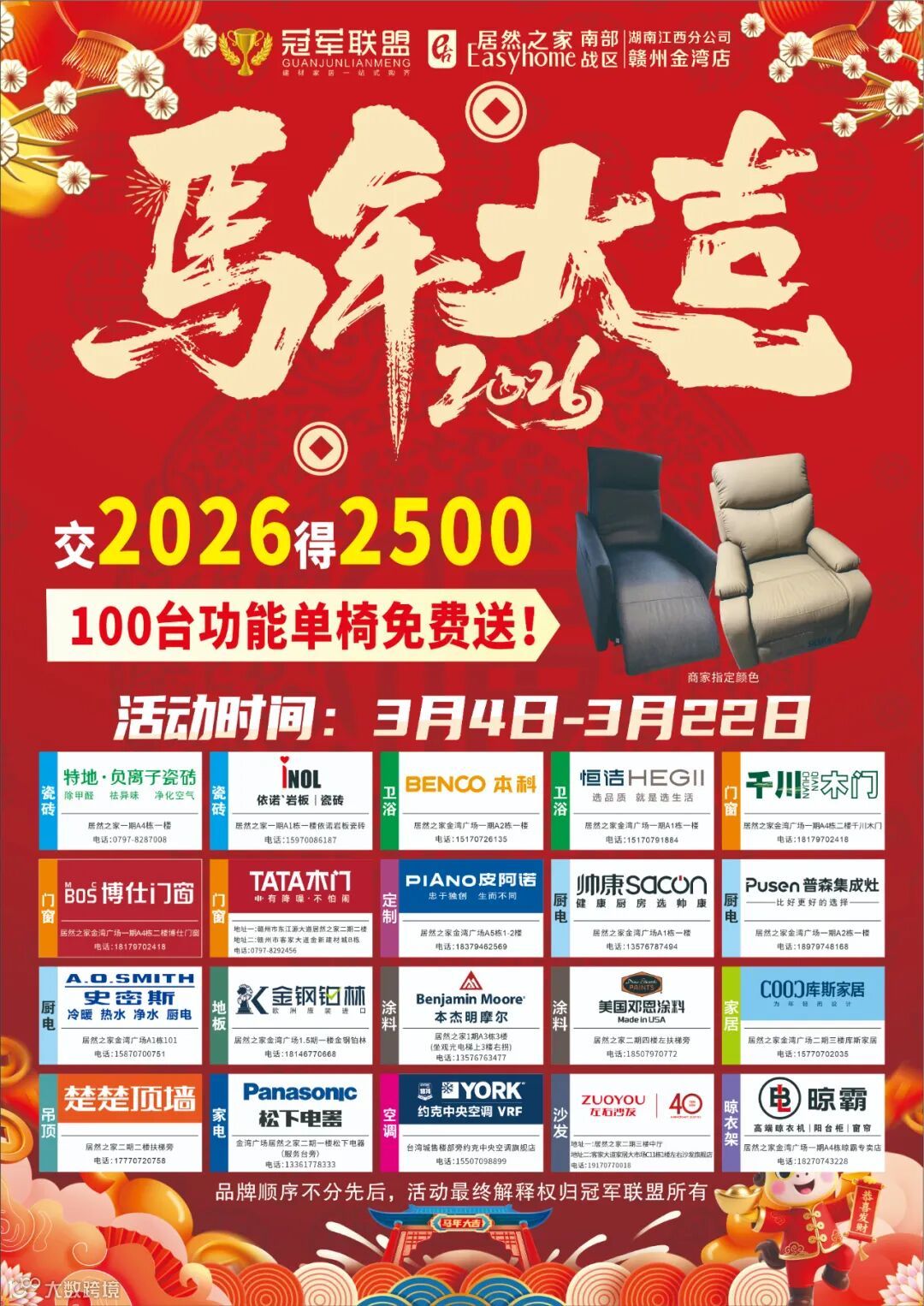 客戶預存2026元到聯(lián)盟,即可免費獲得庫斯/左右功能單椅一張,并升值返還5張500元聯(lián)盟內部現(xiàn)金券,憑此券到聯(lián)盟任意品牌消費滿5000元即可使用一張,即實付款4500元可抵扣,單品牌最高使用兩張,工廠聯(lián)營鉅獻,壕派100臺單椅,數(shù)量有限,先存先得!