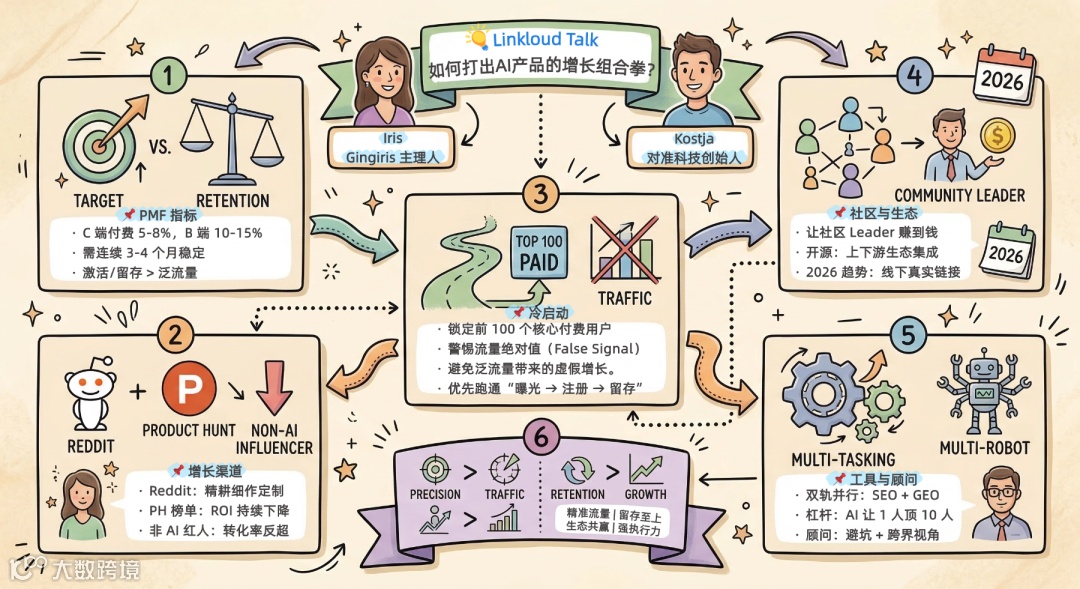 本期Linkloud Talk聚焦AI創(chuàng)業(yè)者普遍面臨的挑戰(zhàn):在產品高度同質化、推廣成本持續(xù)攀升的背景下,如何精準定位產品市場匹配(PMF),實現(xiàn)冷啟動與可持續(xù)增長。