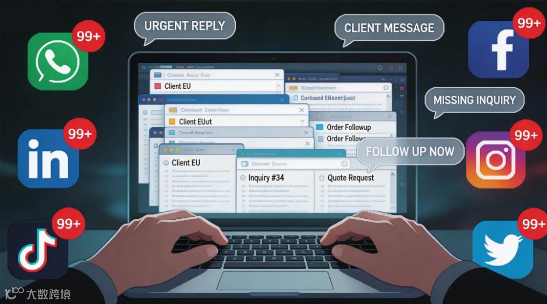 好不容易把客戶引來了,一個人同時回幾十條消息,回完這個忘了那個。半夜歐美客戶發(fā)消息,你睡著了,訂單就沒了。