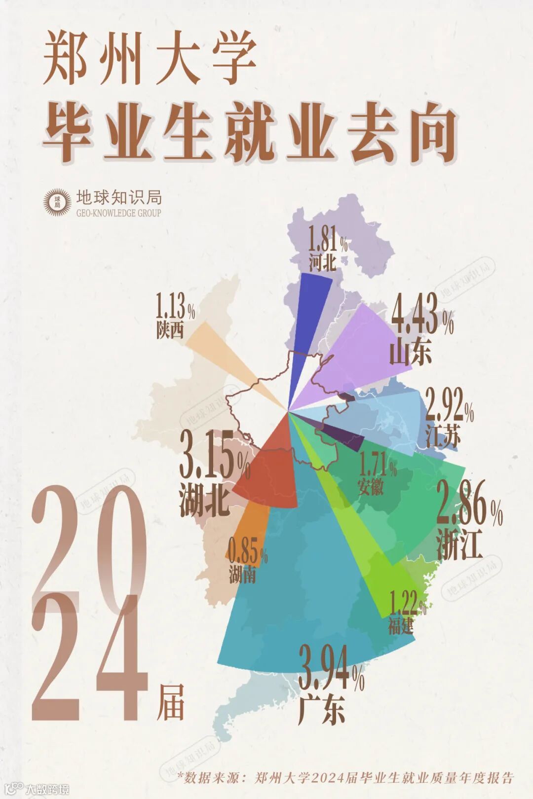 "新一代"職業(yè)結(jié)構(gòu)顯著優(yōu)化。河南籍跨省流動者大專以上學(xué)歷比例從2010年3.6%升至12.06%,鄭州大學(xué)2024屆畢業(yè)生35.76%選擇省外就業(yè),流向逐步轉(zhuǎn)向技術(shù)型、知識型崗位。