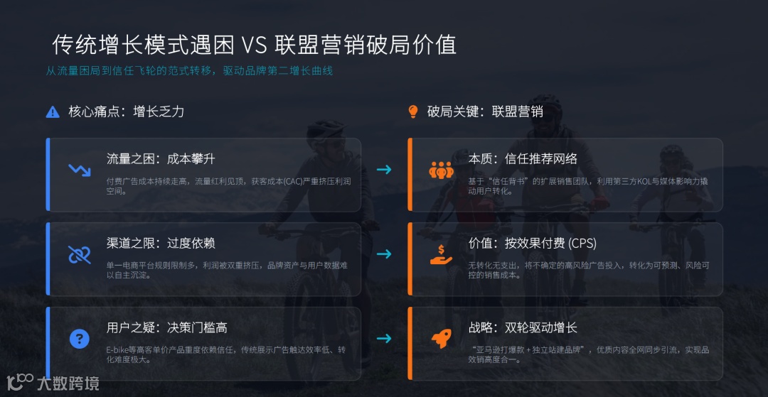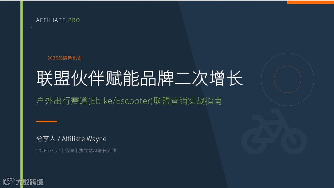 感謝奇贊李總邀請,今日在杭州分享聯(lián)盟營銷如何賦能品牌第二次增長。聚焦Ebike、Escooter等戶外出行類目,系統(tǒng)解析聯(lián)盟營銷全流程策略。