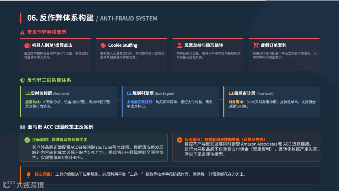 針對機(jī)器人點擊、Cookie Stuffing等作弊行為:實時監(jiān)控IP聚集與設(shè)備異常;部署規(guī)則引擎篩不合理訂單;設(shè)置30-60天財務(wù)緩沖期復(fù)核退單率。