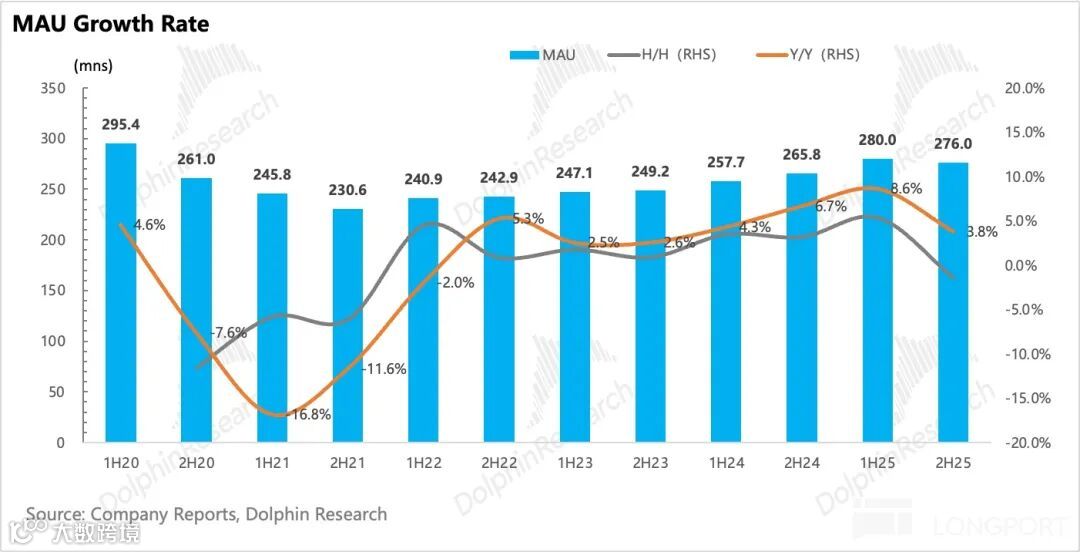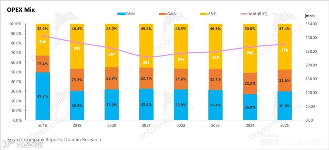 管理層解釋下半年MAU逆增長源于國內(nèi)生活場景產(chǎn)品進入成熟期。但生產(chǎn)力場景MAU僅2400萬未獲詳細說明,盡管處于B端滲透階段,增速已從2023年的36.83%降至2025年的8.17%。