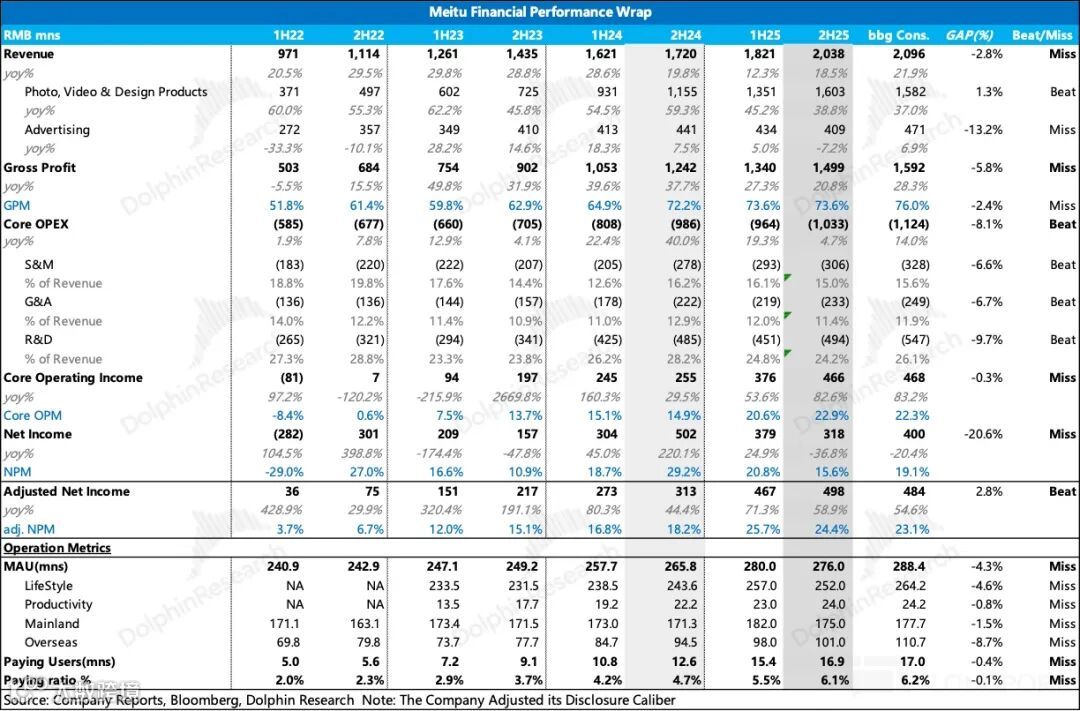 3月27日,美圖公司發(fā)布2025財年財報。下半年業(yè)績未達預(yù)期,收入和毛利均低于目標(biāo),但經(jīng)營利潤因費用控制得當(dāng)基本符合預(yù)期。然而,用戶生態(tài)對訂閱收入造成壓力,整體表現(xiàn)欠佳。管理層在業(yè)績會上回應(yīng)"AI吞噬軟件"質(zhì)疑,稱模型與應(yīng)用相輔相成,公司正推進AI Agent戰(zhàn)略,并拓展B端及海外市場。