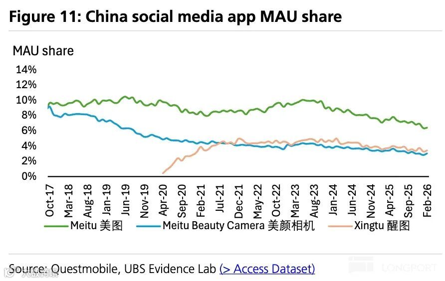 美圖在中重度用戶留存方面具備短期優(yōu)勢,圖片編輯的自主可控性滿足非標(biāo)準(zhǔn)化需求。但輕度場景面臨沖擊:大模型迭代加速削弱功能優(yōu)勢;Agent交互興起使流量入口面臨爭奪。