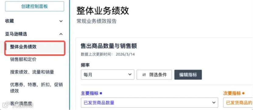2. 進(jìn)入「亞馬遜精選」→「整體業(yè)務(wù)績效」面板