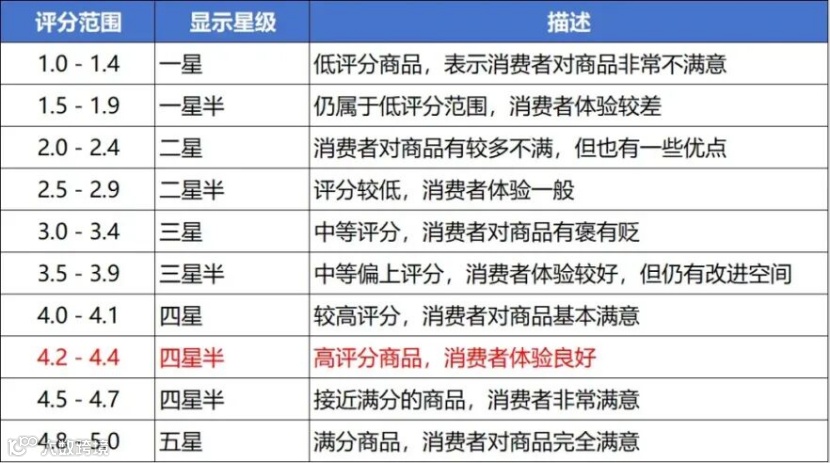 基于類目與站點設(shè)定差異化星級顯示閾值,且閾值隨平臺算法動態(tài)調(diào)整。前臺展示邏輯嚴(yán)格遵循:原始分?jǐn)?shù)≥類目閾值→顯示半星檔位;原始分?jǐn)?shù)<類目閾值→顯示整星檔位。