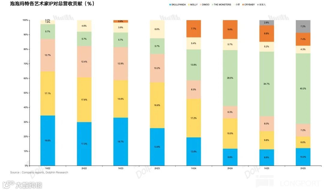 The Monsters系列占比從上半年34.7%提升至42%,LABUBU產(chǎn)能瓶頸下半年得到緩解。星星人系列表現(xiàn)亮眼,占比從3%躍升至7%,全年?duì)I收預(yù)計(jì)達(dá)25億元,成為增長最快IP。Molly、Dimoo等傳統(tǒng)IP貢獻(xiàn)占比普遍下滑。