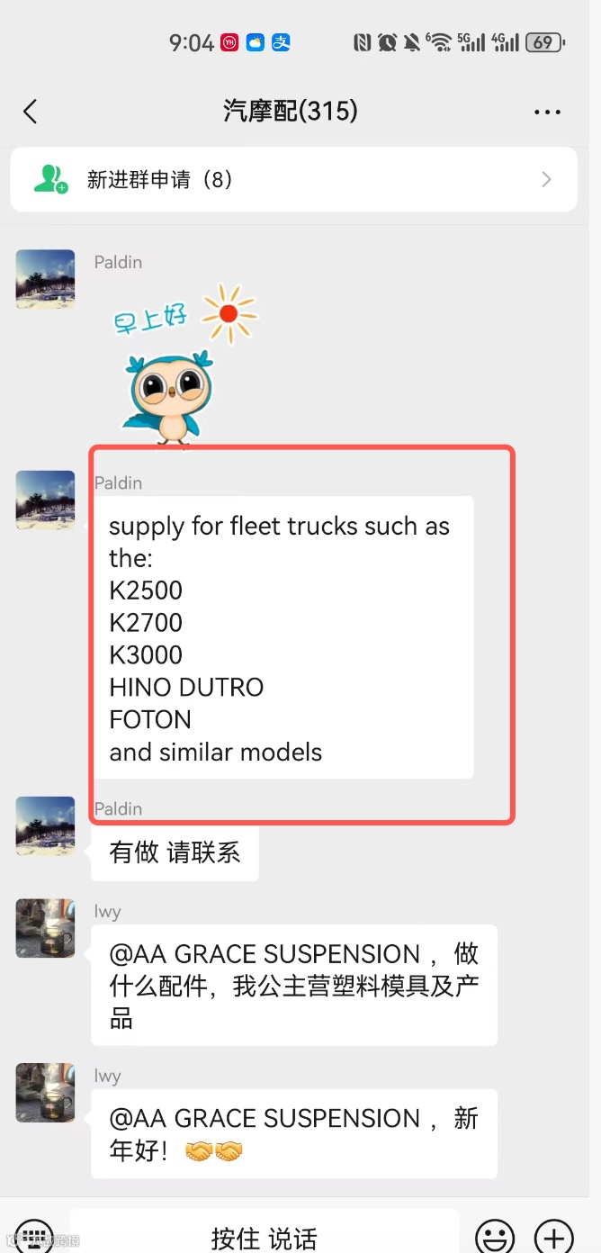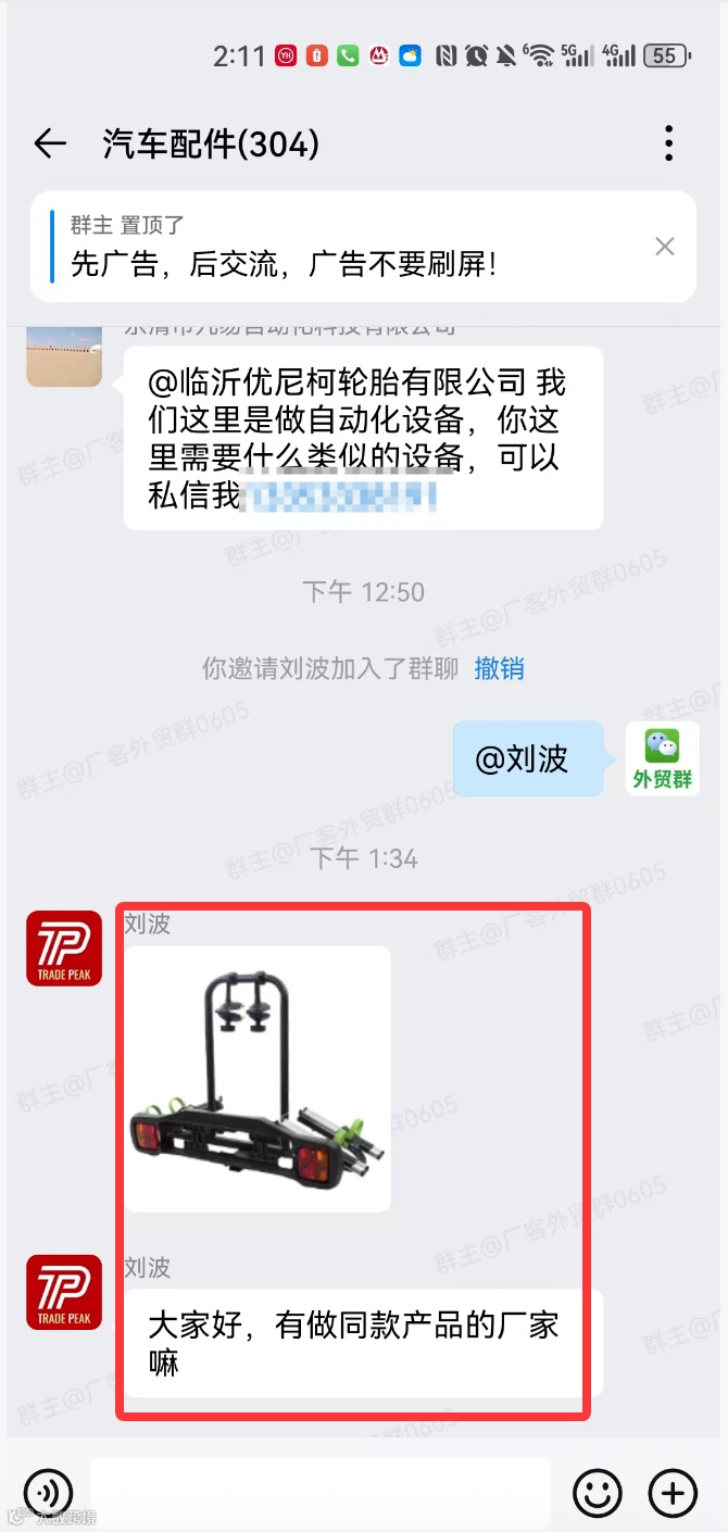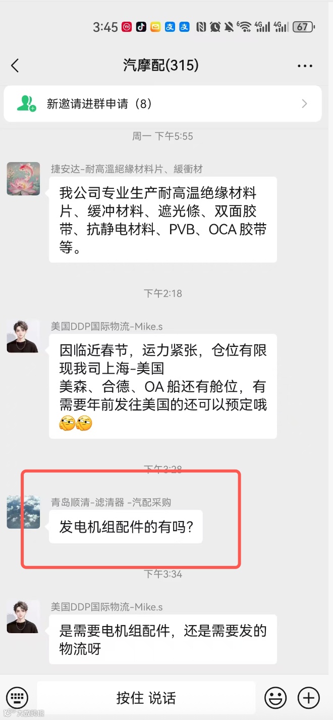汽配外貿交流群現(xiàn)有兩大活躍社群,成員總計超600人,僅限汽配行業(yè)外貿公司及生產工廠申請加入。