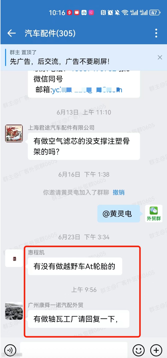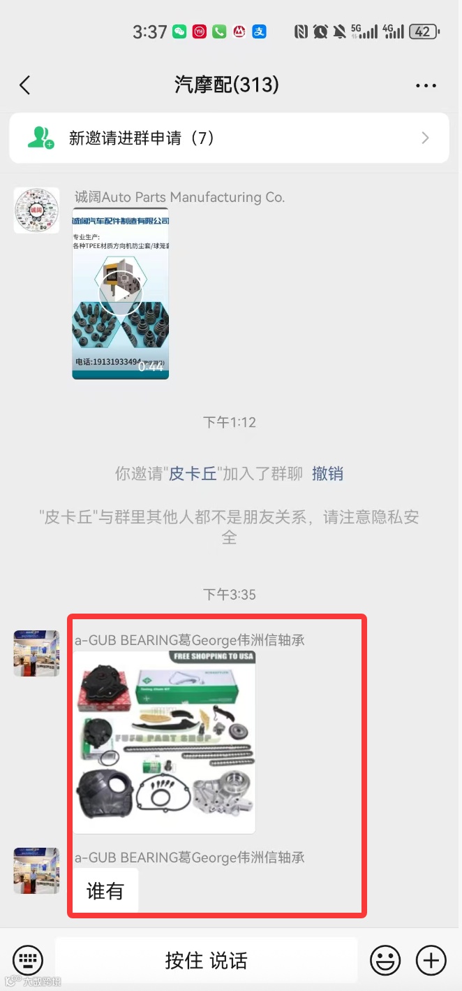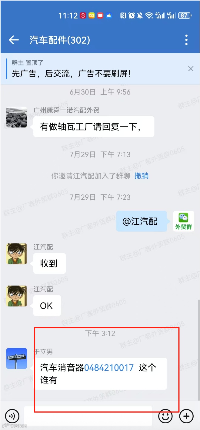 汽車配件群里可以發(fā)布的信息:外貿(mào)采購(gòu)信息、產(chǎn)品銷售信息,文字、圖片、視頻都可以,控制廣告頻率,不能刷屏廣告。