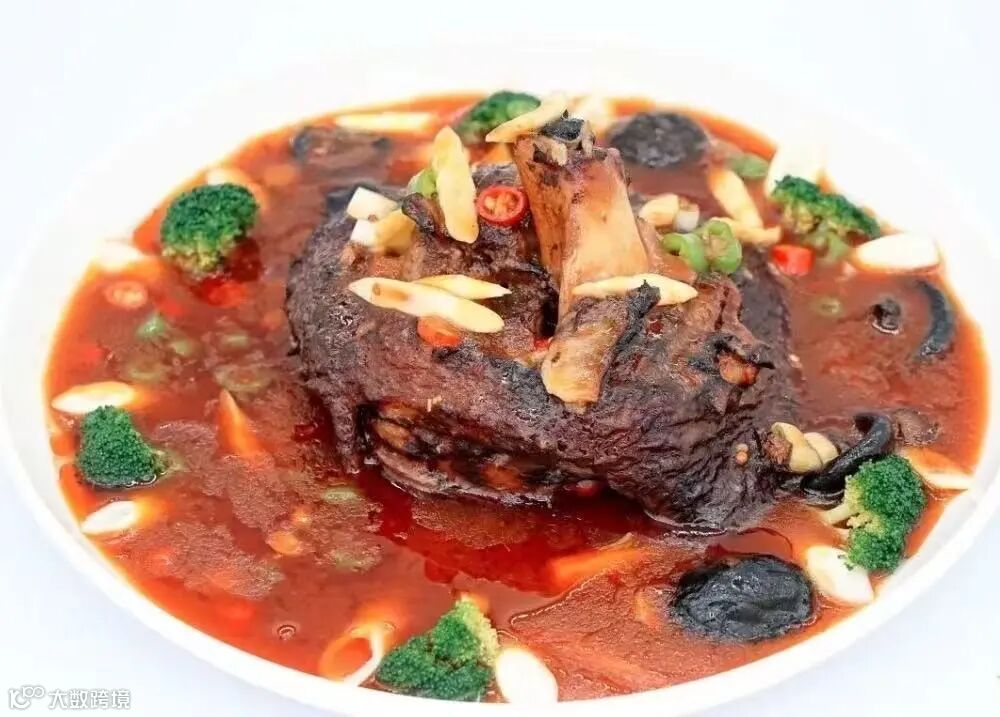 紅潤(rùn)肘子經(jīng)精準(zhǔn)刀工處理,與蜀南石竹筍、山菇共入濃湯慢煨。油脂盡融、膠質(zhì)軟滑,石竹脆嫩解膩。入口軟糯化渣,老少皆宜,呈現(xiàn)家常宴席的溫潤(rùn)之美。