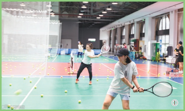 市民在貴州省貴陽市“新印1950”文創(chuàng)街區(qū)里的網(wǎng)球場(chǎng)鍛煉?!靶掠?950”曾是貴州新華印刷廠的老廠區(qū)。(王劍 攝/人民視覺)